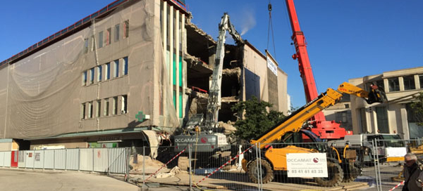Après la période de démolition, transformation de l’ancien magasin en surface commerciale et en appartements haut standing et parking en sous-sol.